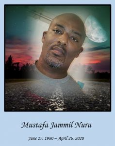 Mustafa Jammil Nuru, 39, passed away unexpectedly on Sunday, April 26th, 2020. He was born on June 27, 1980 to Lucille Warren Nuru and Mustafa Nuru in Huntsville, Alabama.